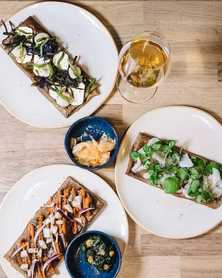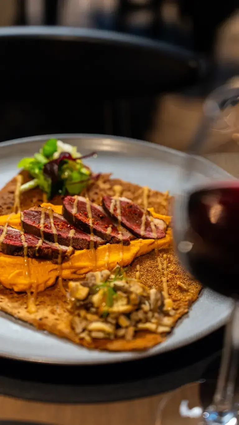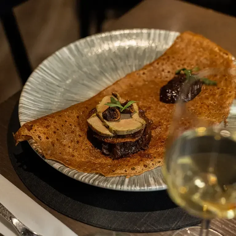 À Trégastel, au cœur de la côte de granit rose, Nomad propose une vision résolument moderne de la crêperie bretonne. Ici, la pâte à galette - fine, légère et impeccablement maîtrisée - sert de base à des créations où saveurs du monde et produits locaux se rencontrent avec audace et élégance. Entre inspirations nordiques, asiatiques ou méditerranéennes, chaque crêpe raconte une histoire tout en restant ancrée dans l’authenticité bretonne. L’ambiance, ouverte et conviviale, invite à la découverte, transformant chaque assiette en une escale gourmande idéale après une balade iodée le long des sentiers côtiers.