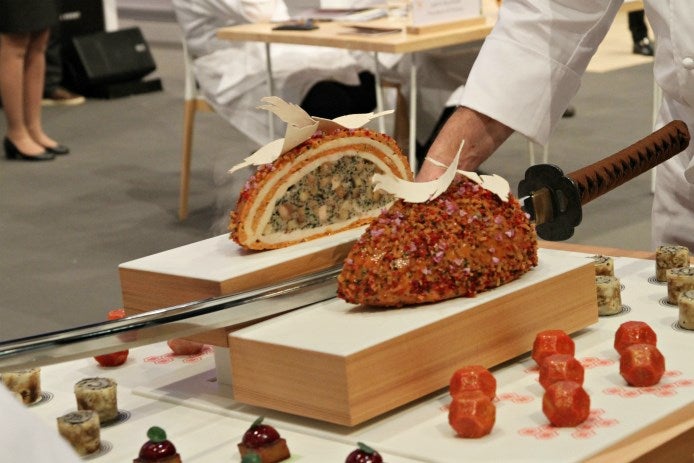 Cela a d'ailleurs été le cas avec le spectaculaire plateau du Japon, où la volaille était tranchée par un sabre typique du pays :