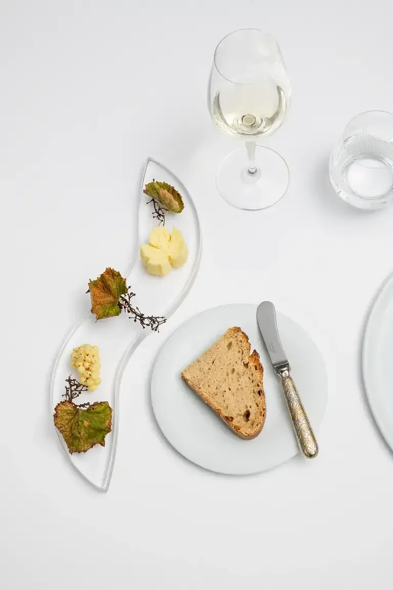 Ici, la vigne ne constitue pas seulement le paysage : elle structure la pensée culinaire. Depuis son arrivée, le chef développe une cuisine intimement liée au terroir, nourrie par les éléments du vignoble, les gestes des vignerons et l’histoire des millésimes. Il se définit lui-même comme un « cuisinier des vignes ».