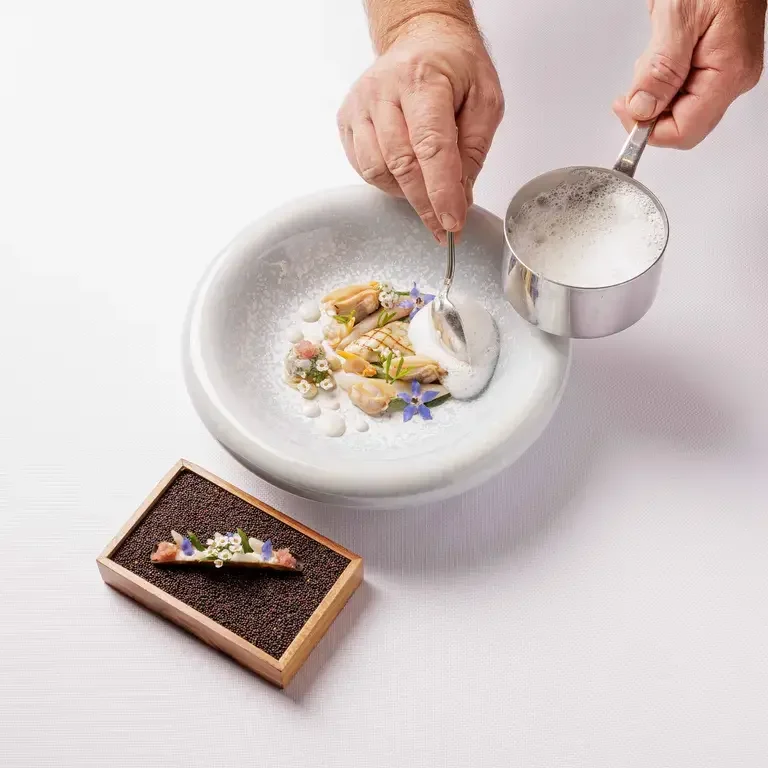 À travers une série de photographies, nous vous invitons à redécouvrir l’univers de Christopher Coutanceau et Nicolas Brossard, un duo uni par l’excellence et l’amour de la mer, où chaque plat raconte une histoire de marées, de saisons et d’horizons.