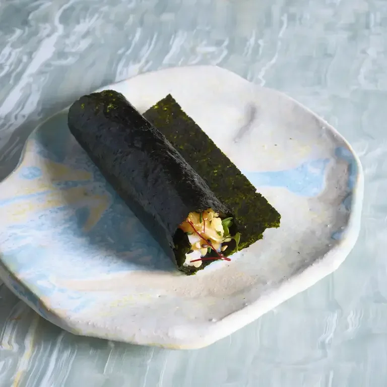 Hando est l’exemple parfait d’une street-food japonaise élégante : le concept se concentre sur le hand-roll, ce rouleau de riz et poisson en cylindre, préparé à la minute devant vous, dans un écrin minimaliste et apaisant. Le décor, inspiré du style de l’architecte Tadao Ando, mêle béton, bois clair et lumière douce, créant une atmosphère zen où l’on peut apprécier le geste des chefs. En accompagnement, la carte propose des sashimis et des mochi glacés signés Tomo, pour une expérience très raffinée à la croisée de la tradition nippone et du rythme urbain parisien.