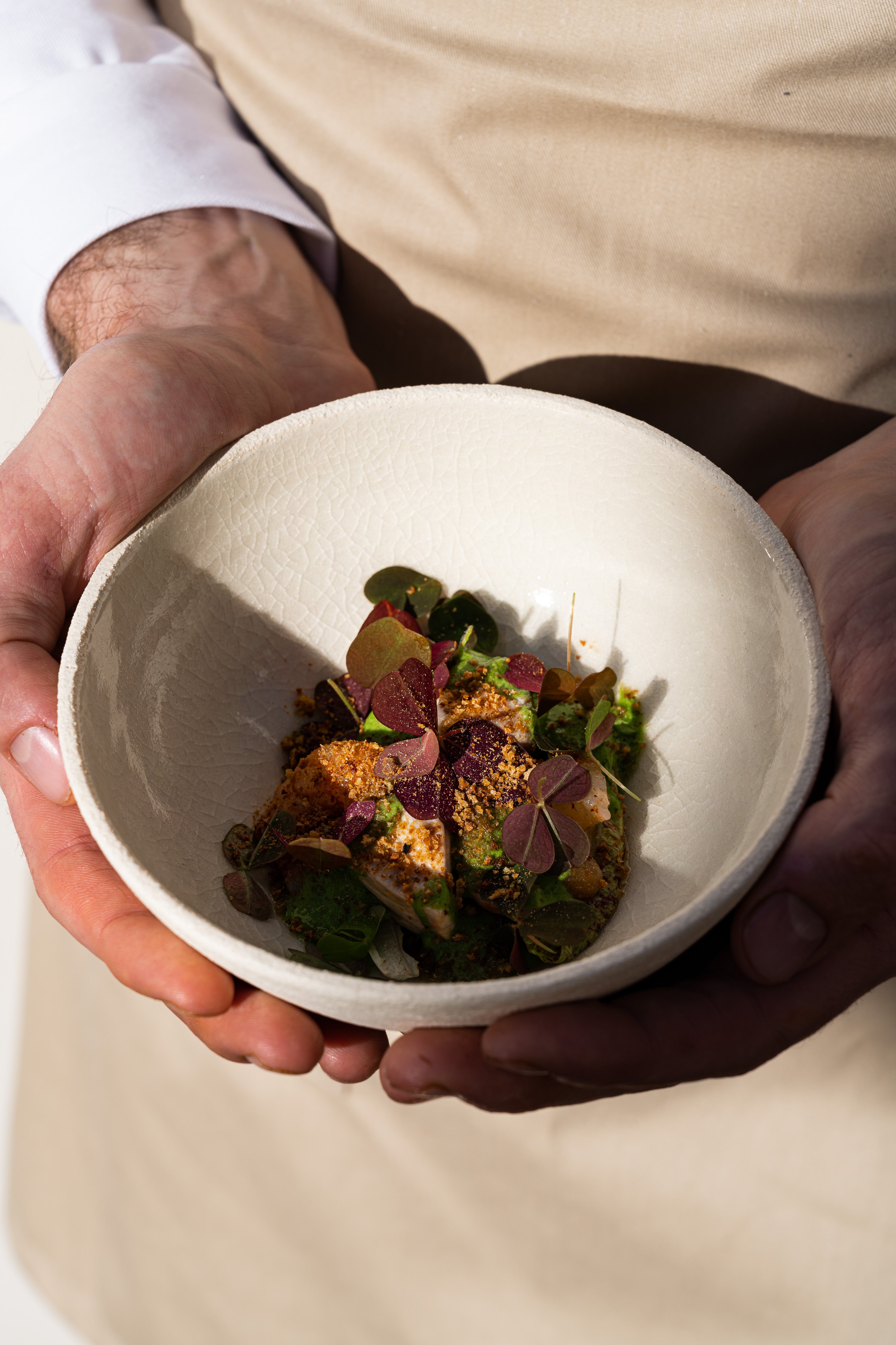 Le 8 février 2024, Julien Caligo a ouvert Monique, son premier restaurant, dans le centre-ville de Calvisson. “C’était le nom de ma grand-mère”, précise le cuisinier de 32 ans, ancien chef du Duende à Nîmes (2 étoiles Michelin) sous la houlette de Pierre Gagnaire, jusqu’en avril dernier. C’est dans une ancienne remise agricole entièrement retapée que Julien Caligo exprime aujourd’hui sa créativité et nous présente Monique avec beaucoup d’entrain. Rencontre.