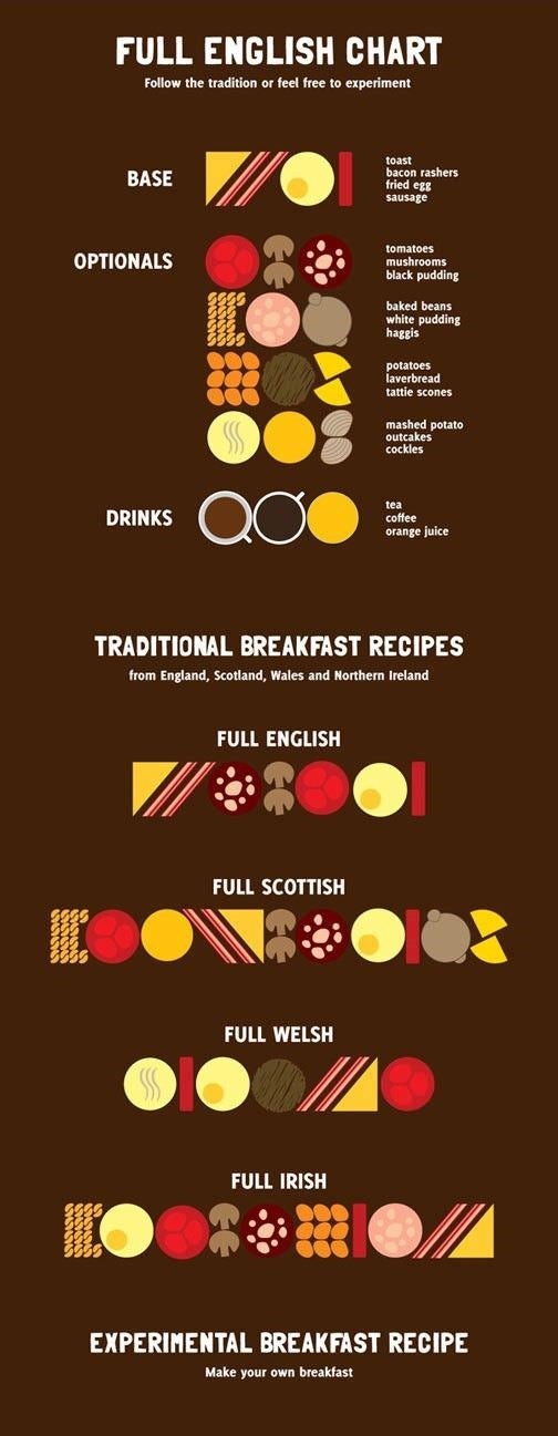 Cette infographie vous aidera sûrement à préparer votre prochain petit-déjeuner anglais traditionnel à la maison tranquillement :