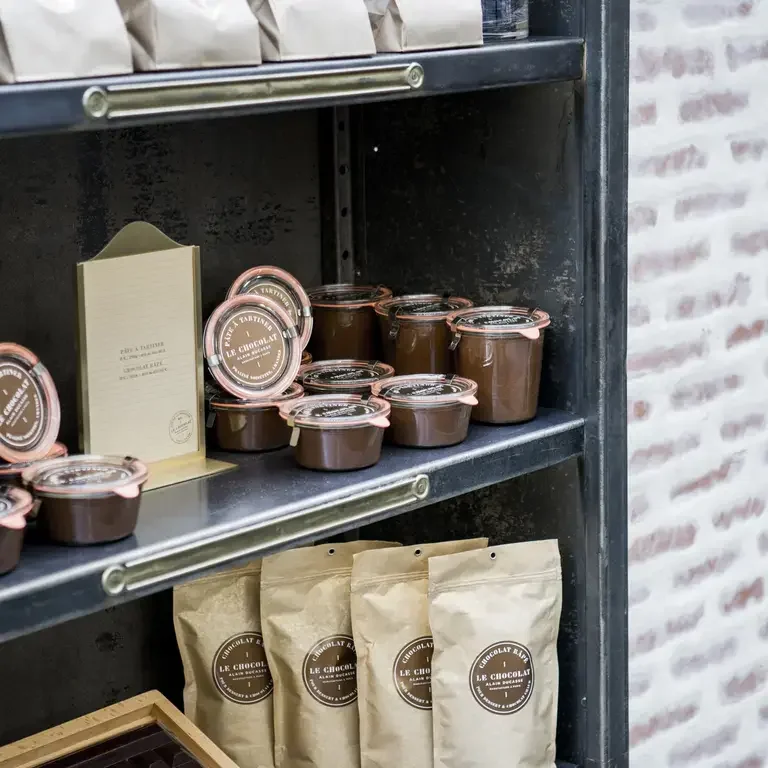 Quentin Francis Gaigneux : Le point de départ, c’est le pourcentage de cacao : 75 % minimum. En dessous, on tombe vite dans une boisson trop sucrée et pas assez expressive. Pour renforcer la profondeur, j’aime ajouter un peu de cacao en poudre - ça donne de la couleur, une pointe d’amertume - ainsi qu’une petite quantité de pâte de cacao 100 %, qui pousse l’intensité aromatique.