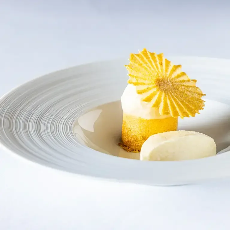 L’expérience sucrée n’est pas en reste grâce à l’indéniable talent de la cheffe pâtissière Sae Hasegawa. Fine technicienne, elle surprend avec des desserts subtils où le légume se fait délicatesse, à l’image de son travail tout en nuance autour du panais ou du salsifis.