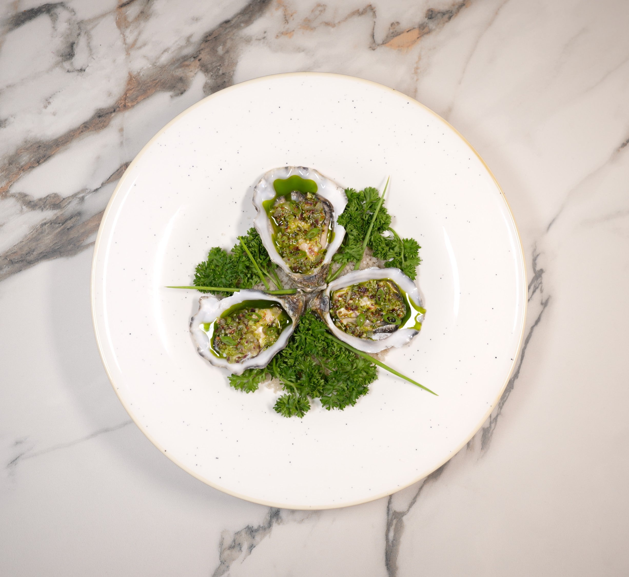 - Déposez une petite cuillère de sauce vierge sur chaque huître.