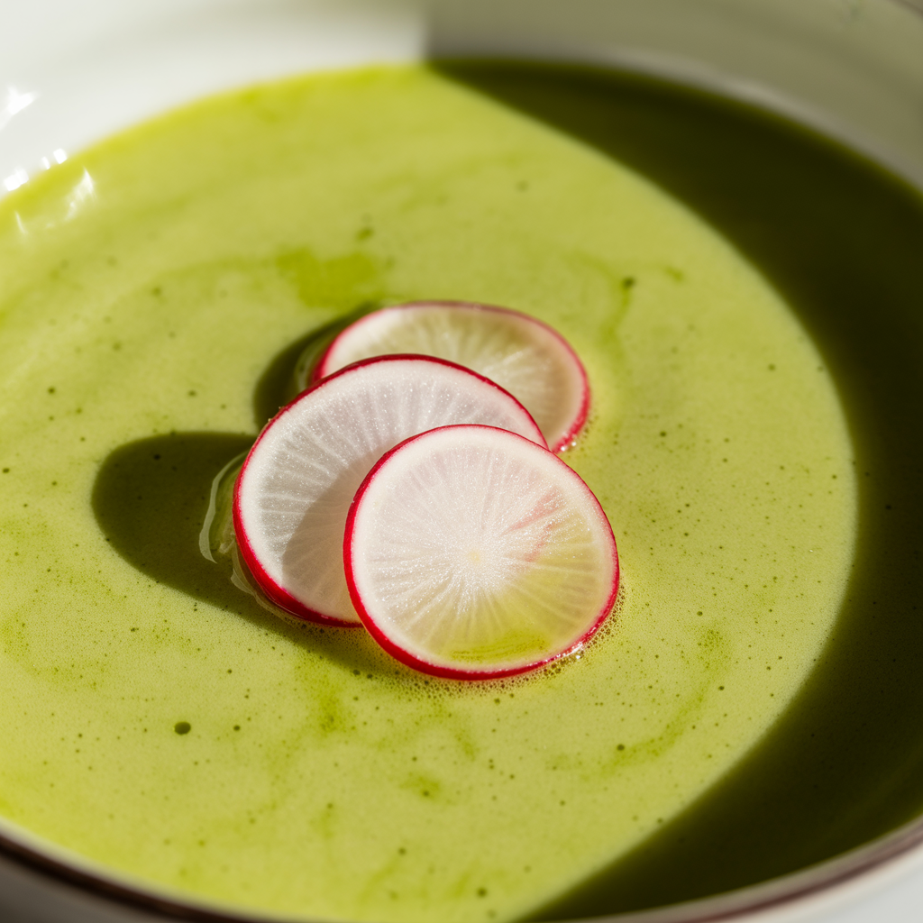 Cette recette de soupe de fane de radis se décline facilement. Ajouter un poireau émincé à la place d’une partie de l’oignon apporte une douceur plus ronde. Une pointe d’ail, ajoutée en fin de suée, renforce le caractère sans masquer la fraîcheur des fanes.